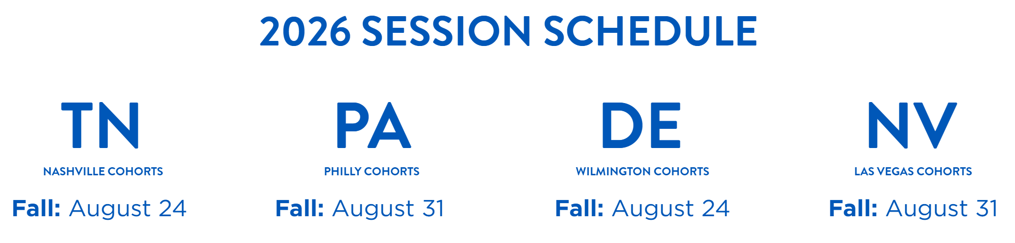 We are currently accepting applications for Fall cohorts for all locations.
